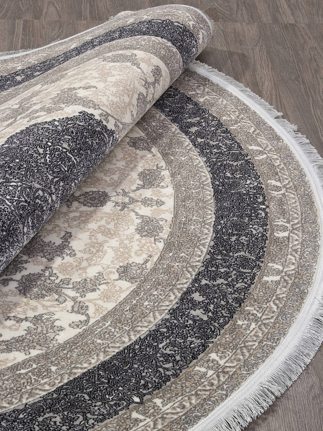 Коротко: «Ковер KASHAN 752029 000 Круг» (KASHAN, IRANOS, Иран) — ковер для дома, гостиной. материал: полипропилен, стиль: в классическом стиле, цвет: кремовый, бежевый, серый, ворс: 12 мм, плотность: 2100000 точек/м², основа: джут, ориентирован на классическую подачу, страна производства: Иран.
