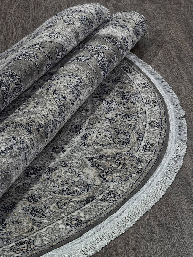 Коротко: «Ковер KASHAN 752065 000 Круг» (KASHAN, IRANOS, Иран) — ковер для дома, гостиной. материал: полипропилен, стиль: в современном стиле, цвет: серый, ворс: 12 мм, плотность: 2100000 точек/м², основа: джут, ориентирован на классическую подачу, страна производства: Иран.
