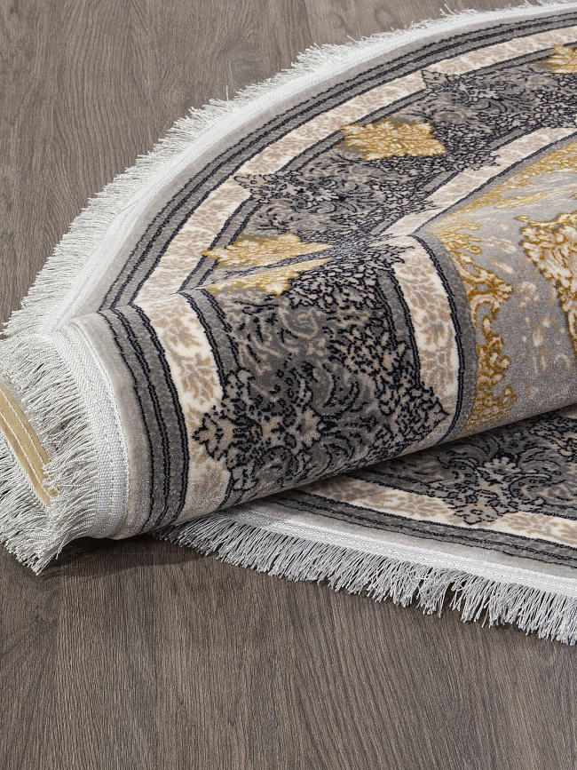 Коротко: «Ковер KASHAN 752192 000 Круг» (KASHAN, IRANOS, Иран) — ковер для дома, гостиной. материал: полипропилен, стиль: в классическом стиле, цвет: серый, бежевый, ворс: 12 мм, плотность: 2100000 точек/м², основа: джут, ориентирован на классическую подачу, страна производства: Иран.