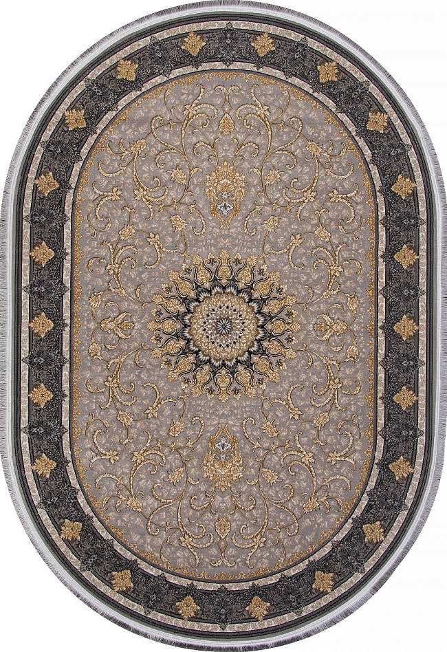 Коротко: «Ковер KASHAN 752192 000 Овал» (KASHAN, IRANOS, Иран) — ковер для дома, гостиной. материал: полипропилен, стиль: в классическом стиле, цвет: серый, бежевый, ворс: 12 мм, плотность: 2100000 точек/м², основа: джут, ориентирован на классическую подачу, страна производства: Иран.