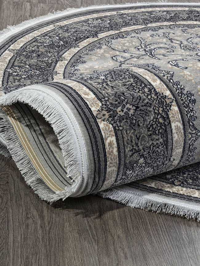 Коротко: «Ковер KASHAN 752197 000 Овал» (KASHAN, IRANOS, Иран) — ковер для дома, гостиной. материал: полипропилен, стиль: в классическом стиле, цвет: серый, бежевый, ворс: 12 мм, плотность: 2100000 точек/м², основа: джут, ориентирован на классическую подачу, страна производства: Иран.