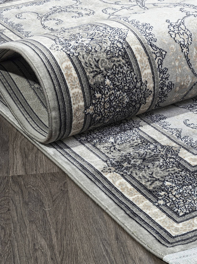 Коротко: «Ковер KASHAN 752197 000» (KASHAN, IRANOS, Иран) — ковер для дома, гостиной. материал: полипропилен, стиль: в классическом стиле, цвет: серый, кремовый, ворс: 12 мм, плотность: 2100000 точек/м², основа: джут, ориентирован на классическую подачу, страна производства: Иран.