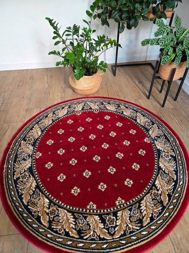 Коротко: «Ковер Кремлевский 40043-04 круг» (Creative Carpets - machine made, Люберецкие ковры) — ковер для дома, гостиной. материал: полипропилен, стиль: в классическом стиле, цвет: бордовый, ворс: 8 мм, плотность: 320000 точек/м², основа: джутовая, ориентирован на классическую подачу, страна производства: Россия.