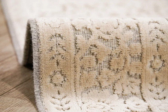 Коротко: «Ковер Lana Verbatex 1216 475044» (Lana Verbatex, VERBATEX) — ковер для прикроватной зоны, дома. материал: 50% Вискоза + 46% Шерсть+ 4% Полиэстер, стиль: современный, Скандинавский, цвет: кремовый, бежевый, ворс: 4 мм, плотность: 820000 точек/м², основа: джутовая, ориентирован на классическую подачу, страна производства: Бельгия.