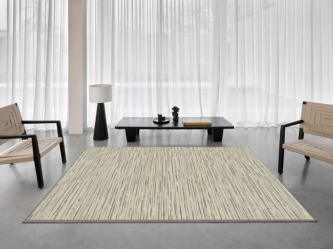 Этот ковер хорошо работает в современном интерьере, где важны чистая визуальная логика, фактура и умеренный декоративный акцент без перегруженности деталями.