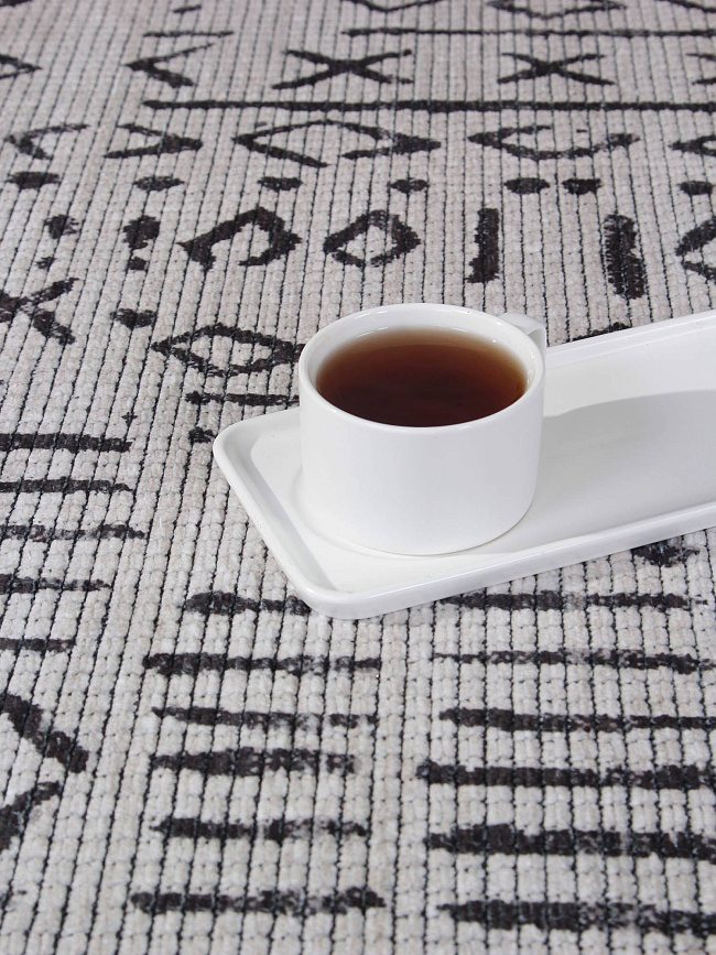 Этот ковер хорошо работает в современном интерьере, где важны чистая визуальная логика, фактура и умеренный декоративный акцент без перегруженности деталями.