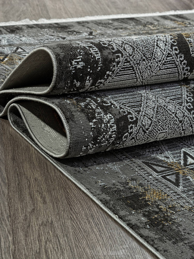 Коротко: «Ковер LISSABON SI023G GREY / GREY» (LISSABON, KARMEN HALI, Турция) — ковер для дома, гостиной. материал: полиэстер, стиль: современный, Фьюжн, цвет: серый, черный, ворс: 7 мм, плотность: 860000 точек/м², основа: хлопок, подходит для современного интерьера, страна производства: Турция.
