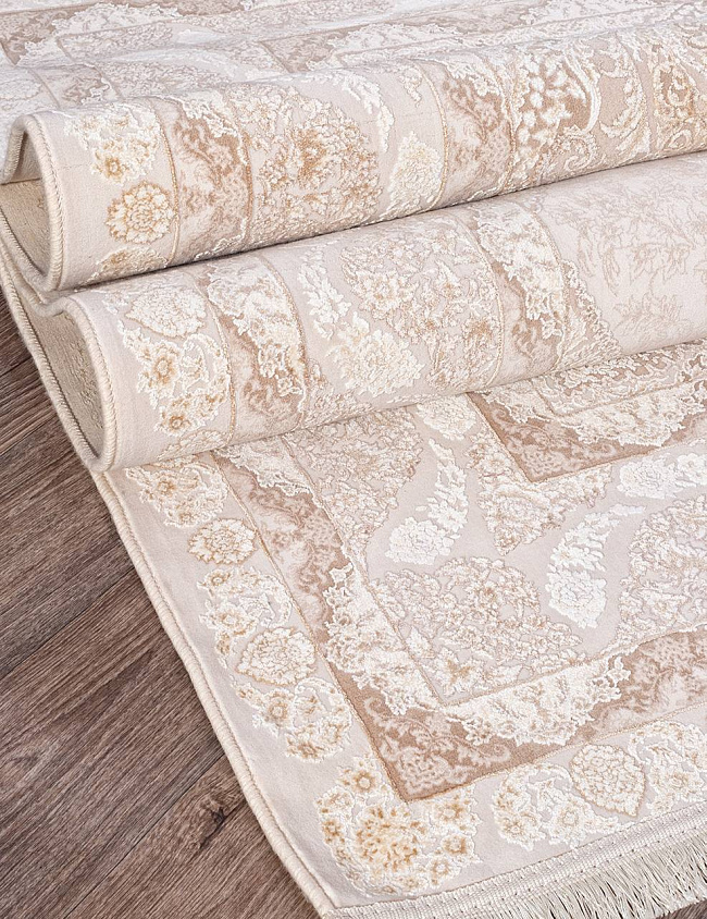 Коротко: «Ковер LOUVRE 105 CREAM» (LOUVRE, IRANOS, Иран) — ковер для дома, гостиной. материал: бамбуковый шелк, стиль: в классическом стиле, цвет: кремовый, коричневый, тип ворса: Средний – 6-12 мм, 10 мм, плотность: 3600000 точек/м², основа: хлопок, ориентирован на классическую подачу, страна производства: Иран.