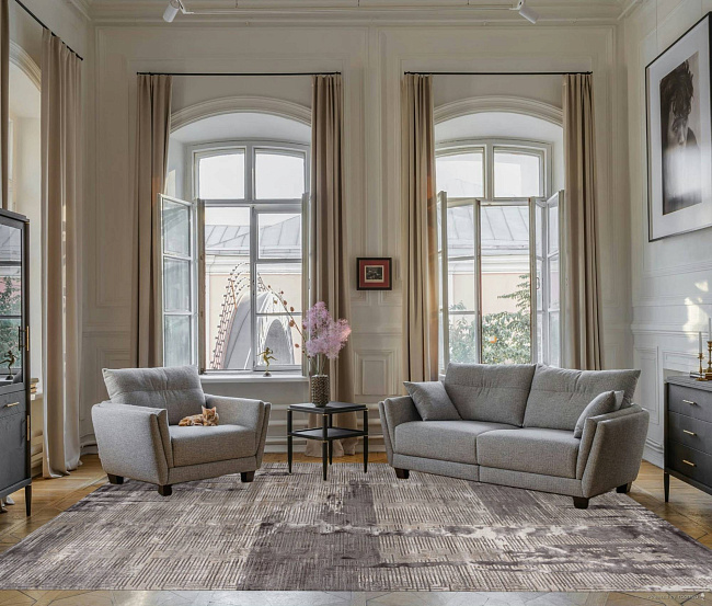 Этот ковер хорошо работает в современном интерьере, где важны чистая визуальная логика, фактура и умеренный декоративный акцент без перегруженности деталями.