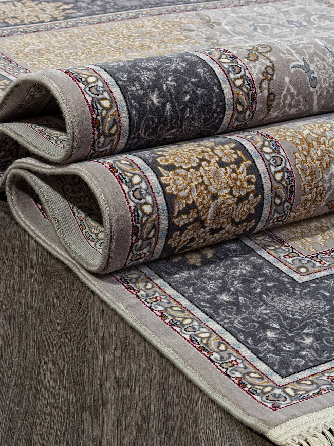 Коротко: «Ковер MAKTUB 7009 000» (MAKTUB, IRANOS, Иран) — ковер для дома, гостиной. материал: акрил, стиль: в классическом стиле, цвет: серый, бежевый, ворс: 10 мм, плотность: 3000000 точек/м², основа: хлопок, ориентирован на классическую подачу, страна производства: Иран.