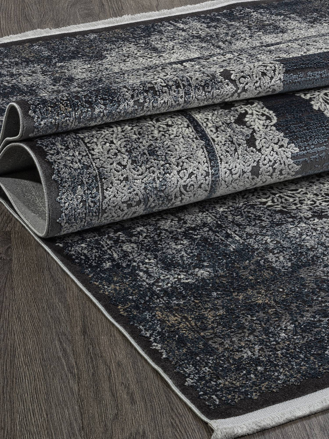 Коротко: «Ковер MARSEL 00231 ANTHRACITE / BLUE» (MARSEL, ISMEN, Турция) — ковер для дома, гостиной. материал: вискоза + Акрил, стиль: в классическом стиле, цвет: серый, черный, серый, ворс: 5 мм, плотность: 1225000 точек/м², основа: хлопок/PES, ориентирован на классическую подачу, страна производства: Турция.