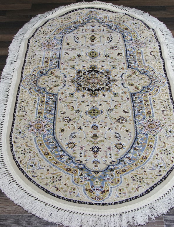 Коротко: «Ковер MASHAD PRESTIGE 02315A CREAM/L. BLUE Овал» (MASHAD PRESTIGE) — ковер. стиль: в классическом стиле, плотность: 1000000 точек/м², ориентирован на классическую подачу, страна производства: Турция.