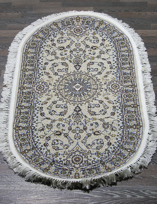 Коротко: «Ковер MASHAD PRESTIGE 08627A CREAM/L. BLUE Овал» (MASHAD PRESTIGE) — ковер. стиль: в классическом стиле, плотность: 1000000 точек/м², ориентирован на классическую подачу, страна производства: Турция.