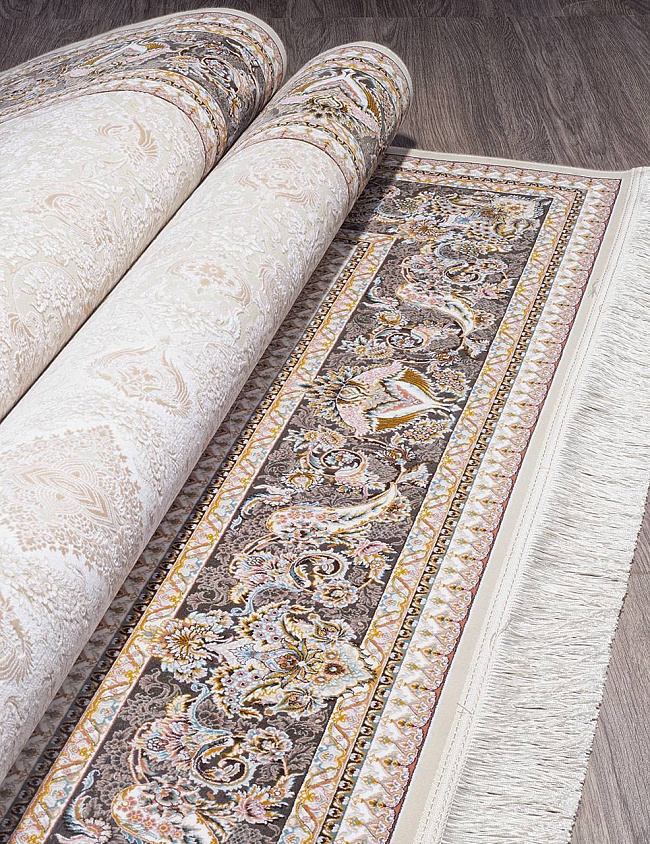 Коротко: «Ковер MEDINA FARHAN CREAM» (MEDINA, IRANOS, Иран) — ковер для дома, гостиной. материал: акрил, стиль: в классическом стиле, цвет: кремовый, серый, ворс: 7 мм, плотность: 4500000 точек/м², основа: хлопок, ориентирован на классическую подачу, страна производства: Иран.