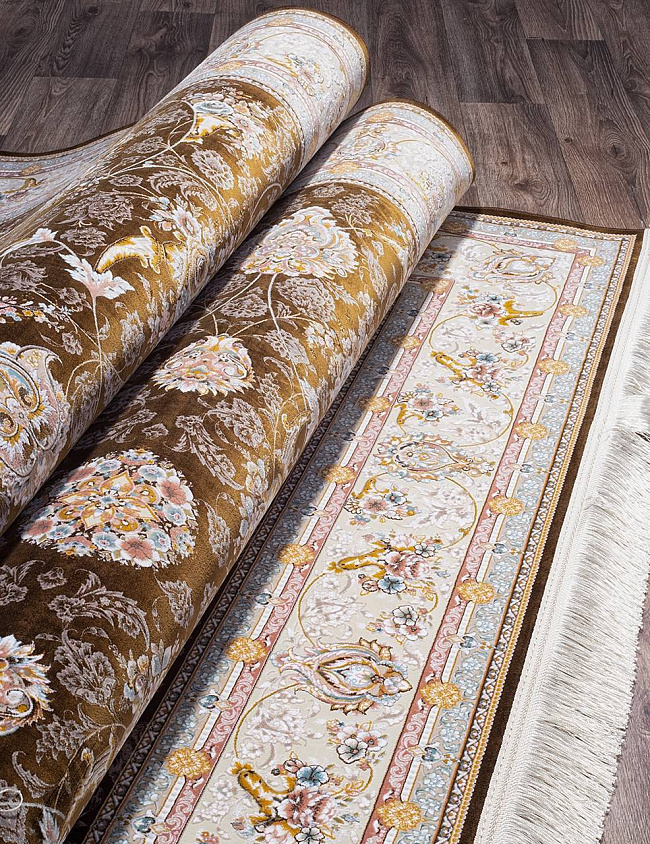 Коротко: «Ковер MEDINA ROZA BROWN» (MEDINA, IRANOS, Иран) — ковер для дома, гостиной. материал: акрил, стиль: в классическом стиле, цвет: коричневый, ворс: 7 мм, плотность: 4500000 точек/м², основа: хлопок, ориентирован на классическую подачу, страна производства: Иран.