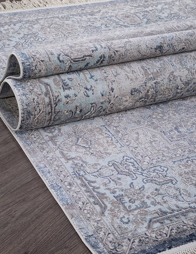 Коротко: «Ковер MESMERIZE O0486 031 BLUE» (MESMERIZE, MERINOS, Турция) — ковер для дома, гостиной. материал: вискоза, стиль: в классическом стиле, цвет: серый, синий, ворс: 4 мм, плотность: 3600000 точек/м², основа: хлопок, ориентирован на классическую подачу, страна производства: Турция.