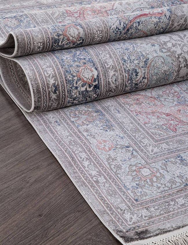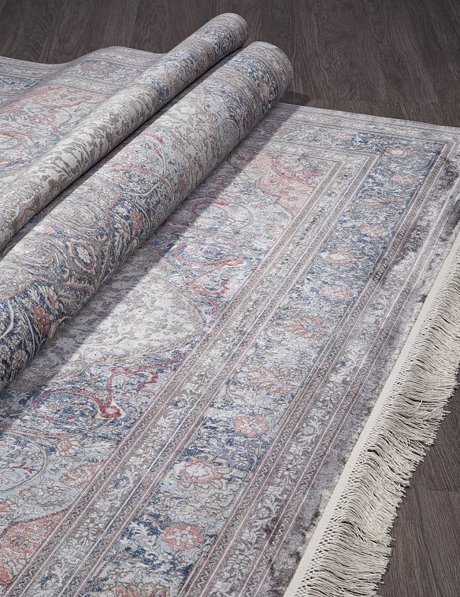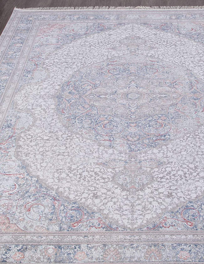 Коротко: «Ковер MESMERIZE O0487 110 MULTI» (MESMERIZE, MERINOS, Турция) — ковер для дома, гостиной. материал: вискоза, стиль: в классическом стиле, цвет: серый, синий, кремовый, ворс: 4 мм, плотность: 3600000 точек/м², основа: хлопок, ориентирован на классическую подачу, страна производства: Турция.