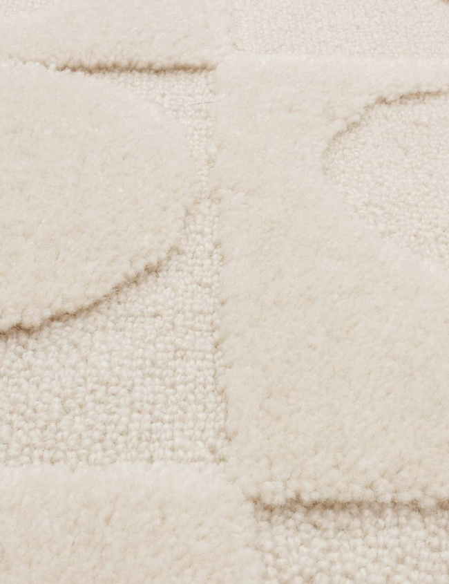 Этот ковер хорошо работает в современном интерьере, где важны чистая визуальная логика, фактура и умеренный декоративный акцент без перегруженности деталями.