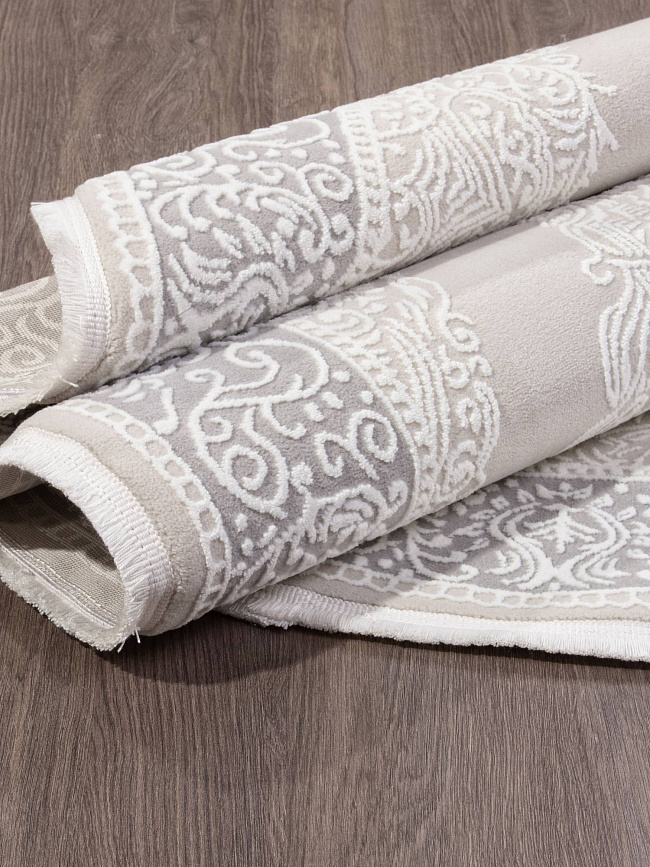 Коротко: «Ковер MODA 1386A K. GRI COKME / K. GRI COKME Овал» (MODA, DORUK, Турция) — ковер для дома, гостиной. материал: полиэстер 25% + Полипропилен 75%, стиль: в классическом стиле, цвет: кремовый, серый, ворс: 8 мм, плотность: 460000 точек/м², основа: хлопок, ориентирован на классическую подачу, страна производства: Турция.