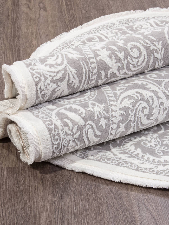 Коротко: «Ковер MODA A0077 K. GRI COKME / K. GRI COKME Овал» (MODA, DORUK, Турция) — ковер для дома, гостиной. материал: полиэстер 25% + Полипропилен 75%, стиль: в классическом стиле, цвет: серый, кремовый, ворс: 8 мм, плотность: 460000 точек/м², основа: хлопок, ориентирован на классическую подачу, страна производства: Турция.