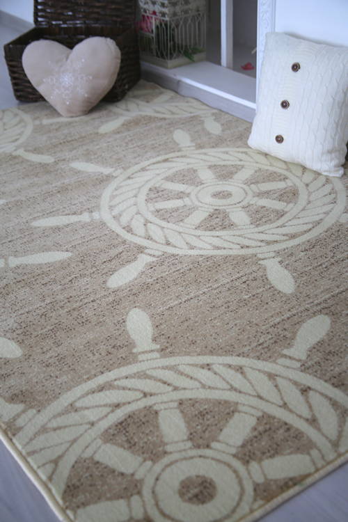 Коротко: «Ковер МОРСКОЙ Корабельные Штурвалы бежевый» (Люберецкие ковры) — ковер для дачи, детского сада. материал: полипропилен, стиль: детский, цвет: бежевый, ворс: 8 мм, плотность: 320000 точек/м², основа: джутовая, подходит для детского интерьера, страна производства: Россия.