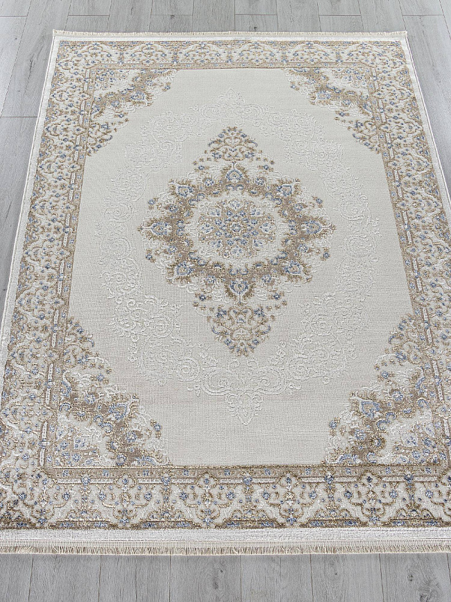 Коротко: «Ковер MOSSO 27236A CREAM / NAVY» (MOSSO, KARDELEN, Турция) — ковер для дома, гостиной. материал: полипропилен + Полиэстер, стиль: в классическом стиле, цвет: кремовый, бежевый, синий, ворс: 8 мм, плотность: 256000 точек/м², основа: джутовая, ориентирован на классическую подачу, страна производства: Турция.
