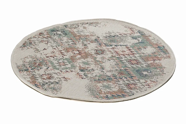 Коротко: «Ковер-циновка Mundo B103 Z701 Круг» (Mundo Круг, Mc Tree) — ковер для дачи, кухни. материал: полипропилен, стиль: в современном стиле, цвет: бежевый, кремовый, синий, коричневый, тип ворса: Безворсовый, Циновка, плотность: 96000 точек/м², подходит для современного интерьера, страна производства: Бельгия.