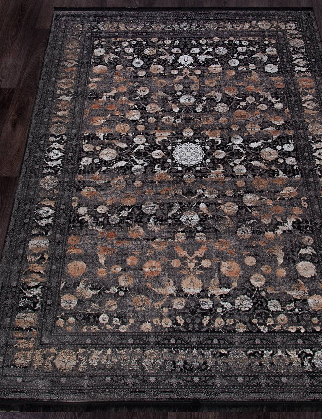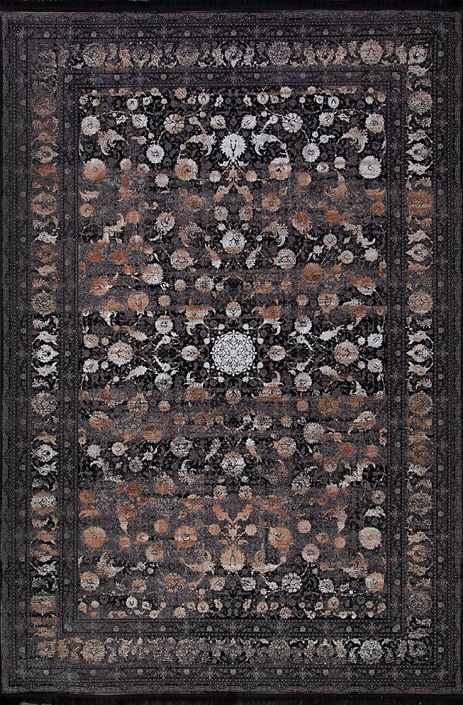Коротко: «Ковер MUSKAT 1200 9044 000» (MUSKAT 1200, IRANOS, Иран) — ковер для дома, гостиной. материал: бамбуковый шелк, стиль: в классическом стиле, цвет: черный, серый, бежевый, коричневый, тип ворса: Короткий, плотность: 3600000 точек/м², основа: хлопок, ориентирован на классическую подачу, страна производства: Иран.