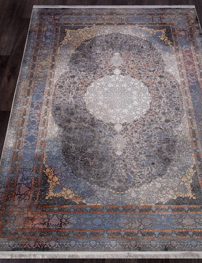 Коротко: «Ковер MUSKAT 1200 9070 000» (MUSKAT 1200, IRANOS, Иран) — ковер для дома, гостиной. материал: бамбуковый шелк, стиль: в классическом стиле, цвет: синий, серый, коричневый, бежевый, тип ворса: Средний – 6-12 мм, плотность: 3600000 точек/м², основа: хлопок, ориентирован на классическую подачу, страна производства: Иран.
