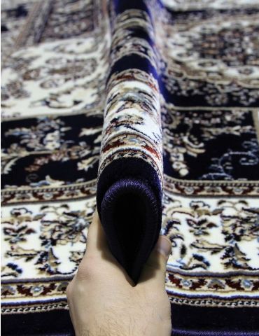 Коротко: «Ковер NIGIN MANOLYA IRANI 8008 NAVY» (NIGIN MANOLYA IRANI, FASHN, Турция) — ковер для дома, гостиной. материал: полиэстер, стиль: в классическом стиле, цвет: синий, кремовый, ворс: 7 мм, плотность: 902400 точек/м², основа: джутовая, ориентирован на классическую подачу, страна производства: Турция.