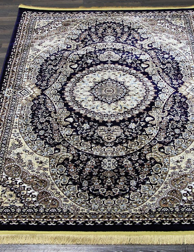 Коротко: «Ковер NIGIN MANOLYA IRANI 8075 NAVY» (NIGIN MANOLYA IRANI, FASHN, Турция) — ковер для дома, гостиной. материал: полиэстер, стиль: в классическом стиле, цвет: синий, кремовый, ворс: 7 мм, плотность: 902400 точек/м², основа: джутовая, ориентирован на классическую подачу, страна производства: Турция.