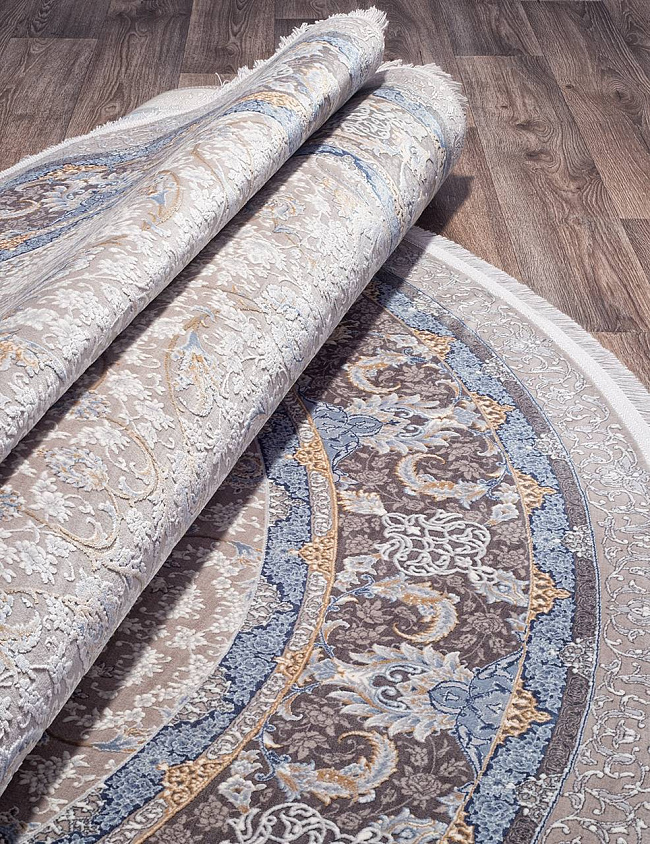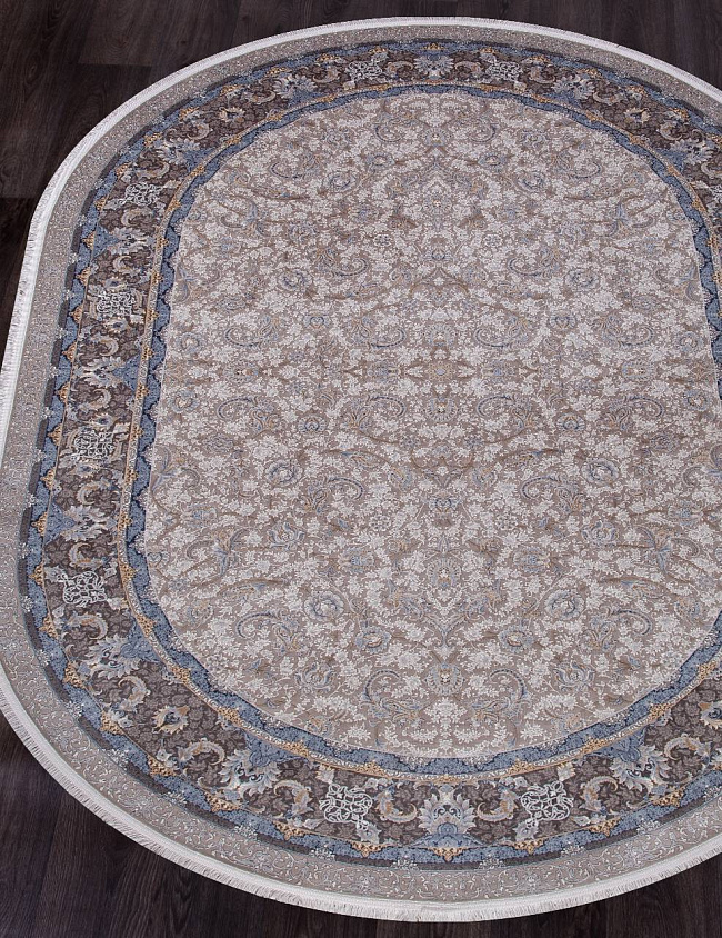 Коротко: «Ковер NOYAN 7022 GRAY Овал» (NOYAN, IRANOS, Иран) — ковер для дома, гостиной. материал: акрил, стиль: в классическом стиле, цвет: кремовый, бежевый, коричневый. синий, тип ворса: Средний – 6-12 мм, плотность: 3600000 точек/м², основа: хлопок, ориентирован на классическую подачу, страна производства: Иран.