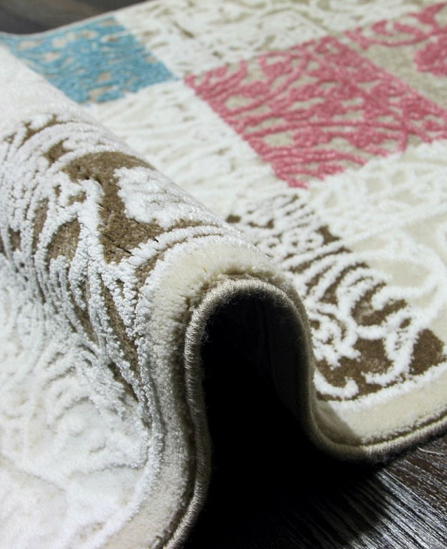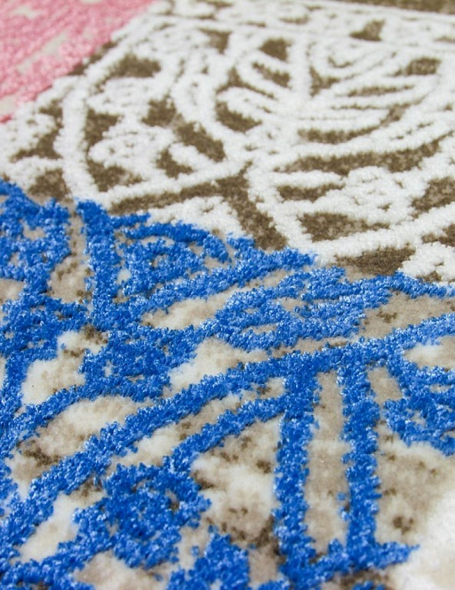 Коротко: «Ковер OFELYA OF004 070» (OFELYA, MERINOS, Турция) — ковер для дома, гостиной. материал: акрил, стиль: в современном стиле, цвет: кремовый, синий, розовый, тип ворса: Средний – 6-12 мм, плотность: 360000 точек/м², основа: джутовая, подходит для современного интерьера, страна производства: Турция.