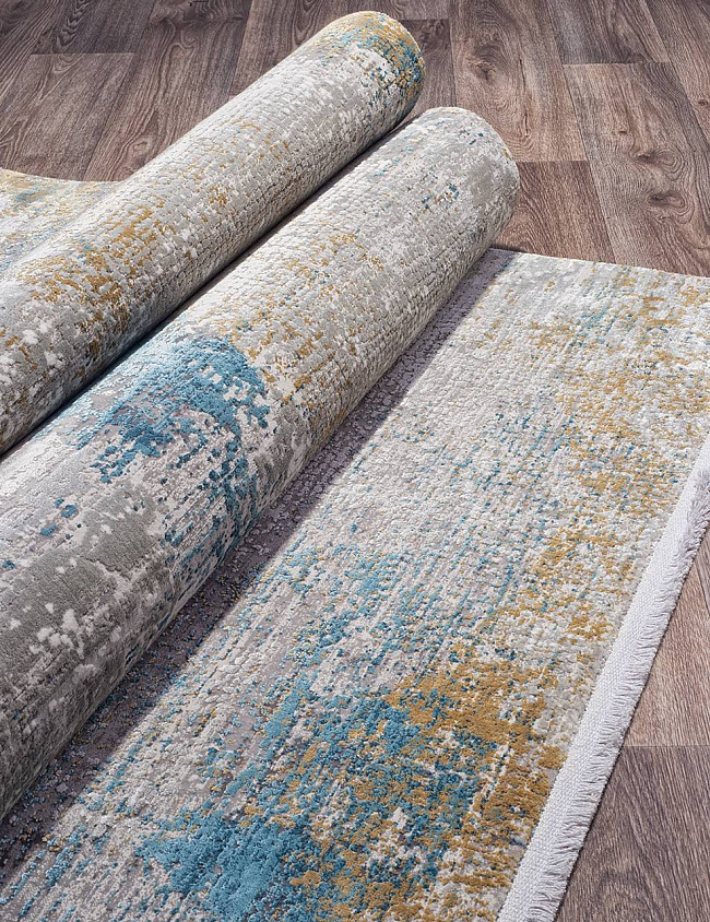 Коротко: «Ковер OLIMPOS MT140 CREAM / BLUE» (OLIMPOS, MILAT, Турция) — ковер для дома, гостиной. материал: вискоза 50% + Акрил 50%, стиль: в современном стиле, цвет: серый, кремовый, синий, ворс: 8 мм, плотность: 2000000 точек/м², основа: хлопок, подходит для современного интерьера, страна производства: Турция.