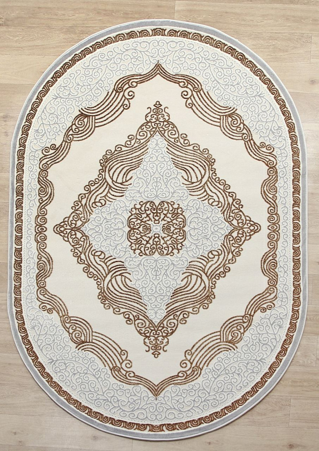 Коротко: «Ковер OLYMP 9026A BEIGE / GREY Овал» (OLYMP, FASHN, Турция) — ковер для дома, гостиной. материал: акрил + Полиэстер, стиль: в классическом стиле, цвет: коричневый, кремовый, серый, голубой, ворс: 9 мм, плотность: 504000 точек/м², основа: джутовая, ориентирован на классическую подачу, страна производства: Турция.