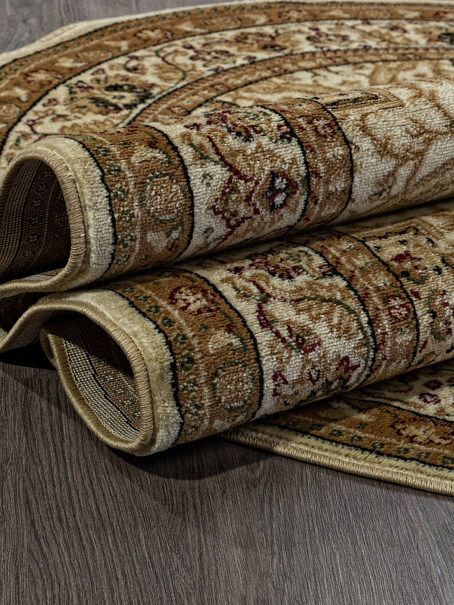 Коротко: «Ковер OLYMPOS D868 CREAM Овал» (OLYMPOS, MERINOS) — ковер для дома, гостиной. материал: полипропилен, стиль: в классическом стиле, цвет: бежевый, коричневый, ворс: 8 мм, плотность: 281600 точек/м², основа: джут, ориентирован на классическую подачу, страна производства: Россия.