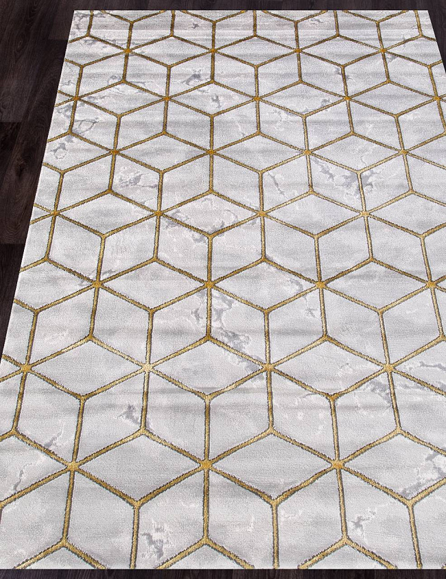 Коротко: «Ковер OMEGA 04426E GOLD / GOLD» (OMEGA, KARMEN HALI, Турция) — ковер для дома, гостиной. материал: полиэстер + Полипропилен, стиль: в современном стиле, цвет: серый, золотой, ворс: 10 мм, плотность: 462000 точек/м², основа: джут, подходит для современного интерьера, страна производства: Турция.