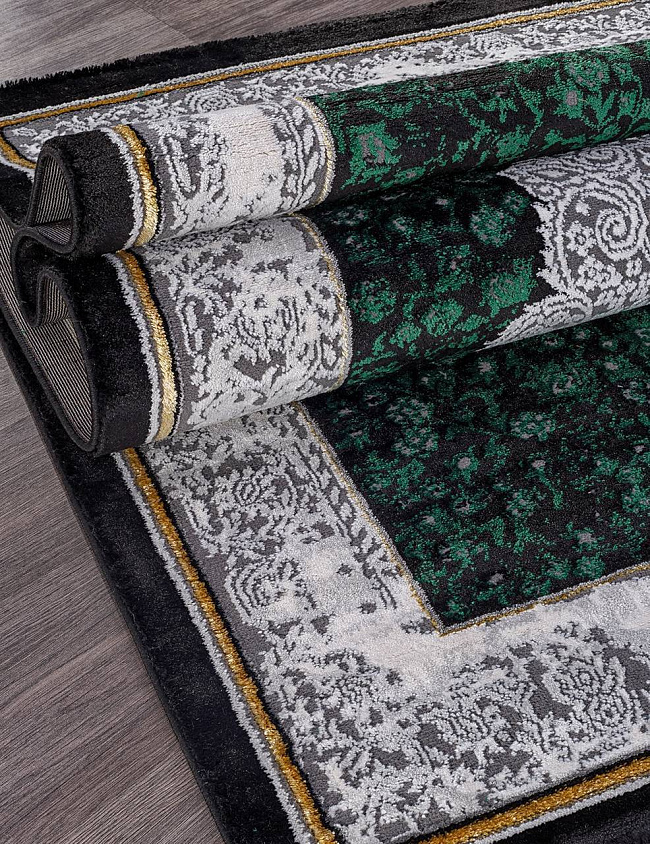 Коротко: «Ковер OMEGA 04482Y GREEN / GREEN» (OMEGA, KARMEN HALI, Турция) — ковер для дома, гостиной. материал: полиэстер + Полипропилен, стиль: в классическом стиле, цвет: зеленый, серый, ворс: 10 мм, плотность: 462000 точек/м², основа: джут, ориентирован на классическую подачу, страна производства: Турция.