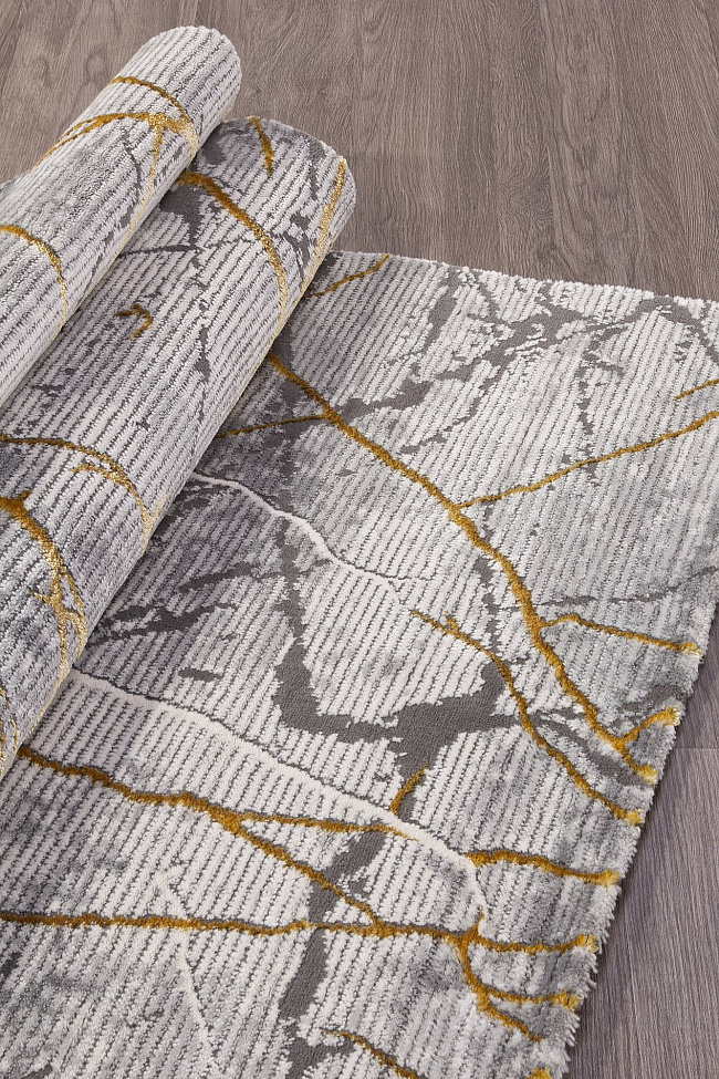 Коротко: «Ковер OMEGA 08716G GOLD / GOLD» (OMEGA, KARMEN HALI, Турция) — ковер для дома, гостиной. материал: полиэстер + Полипропилен, стиль: в современном стиле, цвет: серый, золотой, ворс: 10 мм, плотность: 462000 точек/м², основа: джут, подходит для современного интерьера, страна производства: Турция.