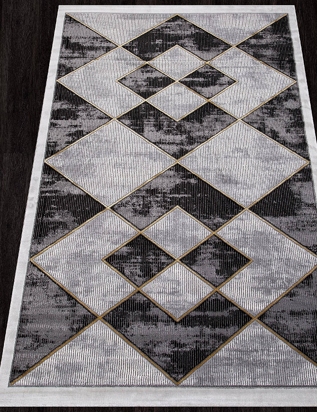 Коротко: «Ковер OMEGA-A 04483G GOLD / GOLD» (OMEGA, KARMEN HALI, Турция) — ковер для дома, гостиной. материал: полиэстер + Полипропилен, стиль: современный, Минимализм, цвет: серый, черный, ворс: 10 мм, плотность: 462000 точек/м², основа: джутовая, подходит для современного интерьера, страна производства: Турция.