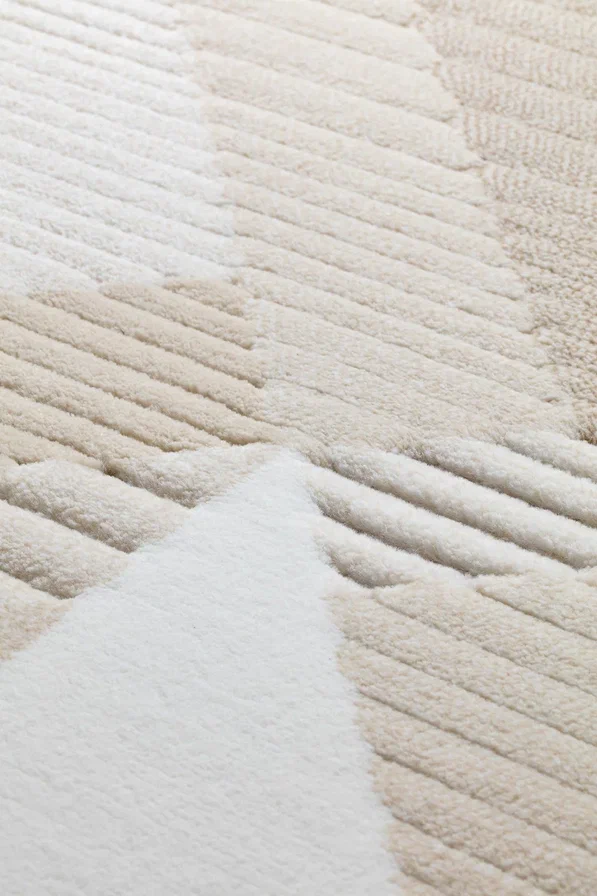 Этот ковер хорошо работает в современном интерьере, где важны чистая визуальная логика, фактура и умеренный декоративный акцент без перегруженности деталями.