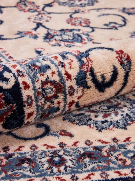 Коротко: «Ковер OSTA Kashqai 45314 110» (Kashqai UF, OSTA) — ковер для дома, гостиной. материал: шерсть, стиль: в классическом стиле, цвет: кремовый, бежевый, синий, ворс: 8.3 мм, плотность: 670000 точек/м², основа: джутовая, ориентирован на классическую подачу, страна производства: Бельгия.
