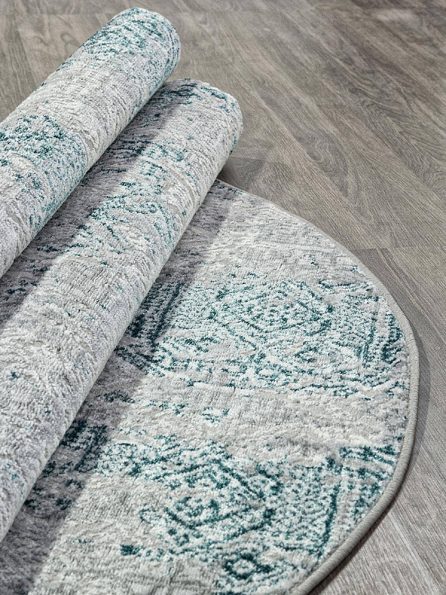 Коротко: «Ковер PALERMO-A F281 GRAY Овал» (PALERMO, MERINOS) — ковер для дома, гостиной. материал: полиэстер + Полипропилен, стиль: в современном стиле, цвет: серый, синий, бирюзовый, ворс: 10 мм, плотность: 280000 точек/м², основа: джут, подходит для современного интерьера, страна производства: Россия.