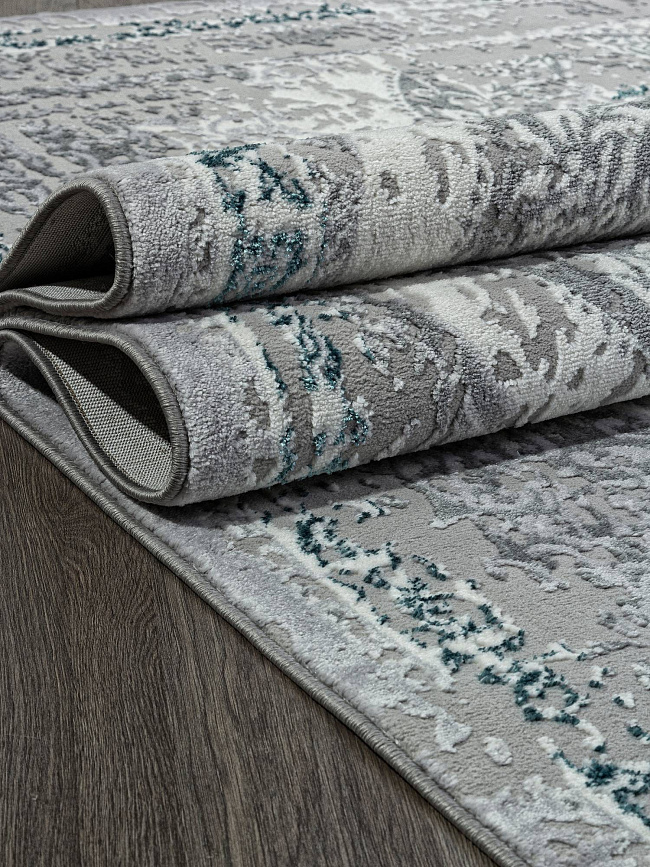 Коротко: «Ковер PALERMO F290 GRAY» (PALERMO, MERINOS) — ковер для дома, гостиной. материал: полиэстер + Полипропилен, стиль: в классическом стиле, цвет: серый, бирюзовый, ворс: 10 мм, плотность: 280000 точек/м², основа: джут, ориентирован на классическую подачу, страна производства: Россия.