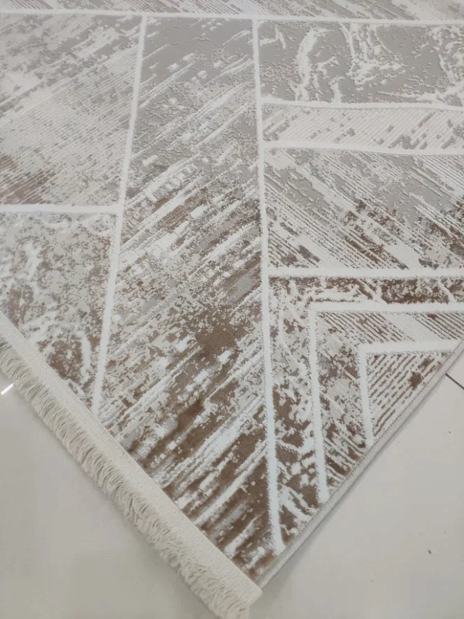 Коротко: «Ковер Palma 4903A Beige-Beige» (Palma, Elisa Rugs, Турция) — ковер для дома, гостиной. материал: полиэстер, стиль: современный, Артдеко, цвет: бежевый, серый, коричневый, кремовый, ворс: 8 мм, плотность: 510000 точек/м², основа: 100% Хлопок, подходит для современного интерьера, страна производства: Турция.
