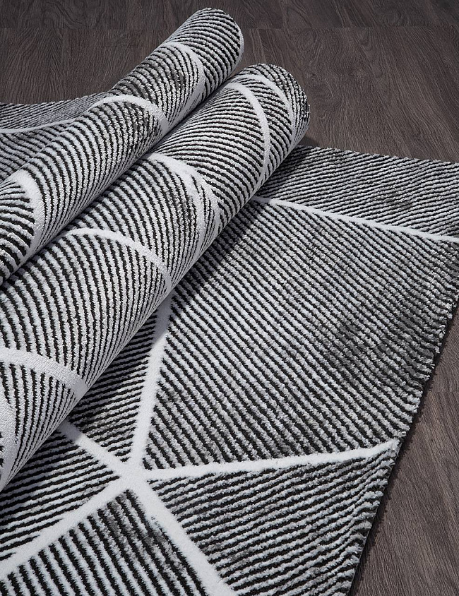 Коротко: «Ковер PANAMA PN004G GREY / GREY» (PANAMA, KARMEN HALI, Турция) — ковер для дома, гостиной. материал: полиэстер, стиль: в современном стиле, цвет: светло-серый, темно-серый, белый, ворс: 9 мм, плотность: 530000 точек/м², основа: джут, подходит для современного интерьера, страна производства: Турция.