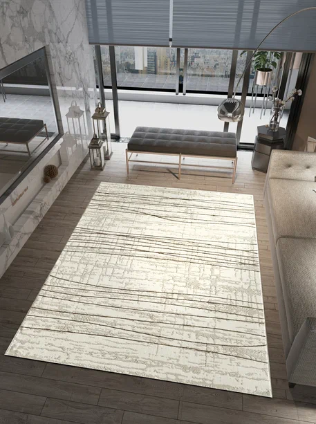 Этот ковер хорошо работает в современном интерьере, где важны чистая визуальная логика, фактура и умеренный декоративный акцент без перегруженности деталями.
