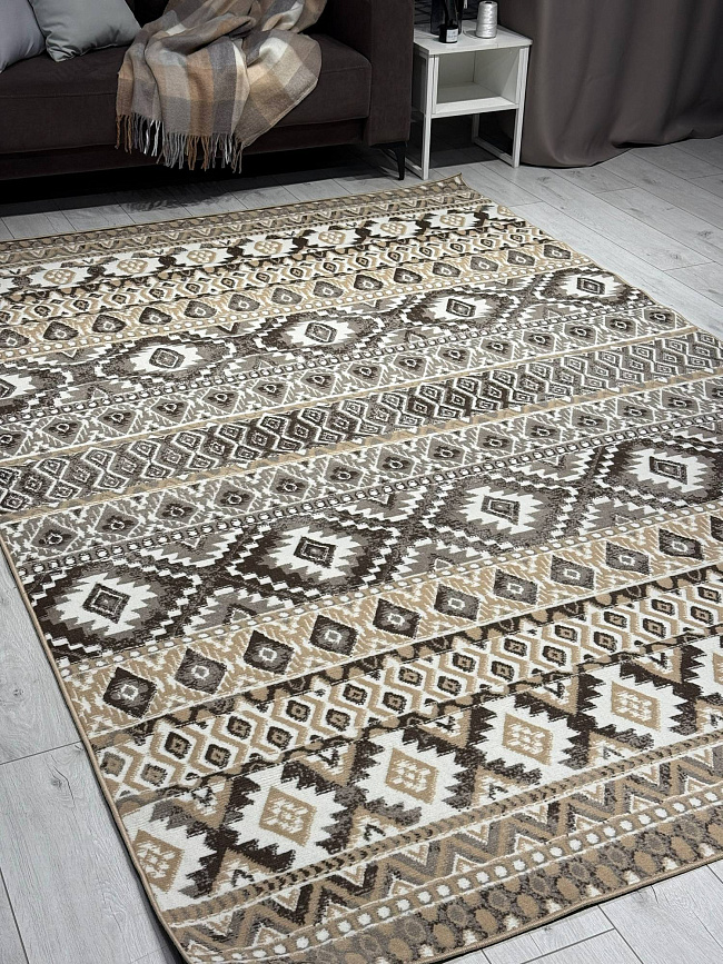 Коротко: «Ковер PRAGA 06050A BROWN / TOZ GRI» (PRAGA, AIDIN CARPET, Грузия) — ковер для дома, гостиной. материал: полипропилен, стиль: в стиле бохо, цвет: серый, коричневый, бежевый, ворс: 7 мм, плотность: 104000 точек/м², основа: джут, ориентирован на классическую подачу, страна производства: Грузия.