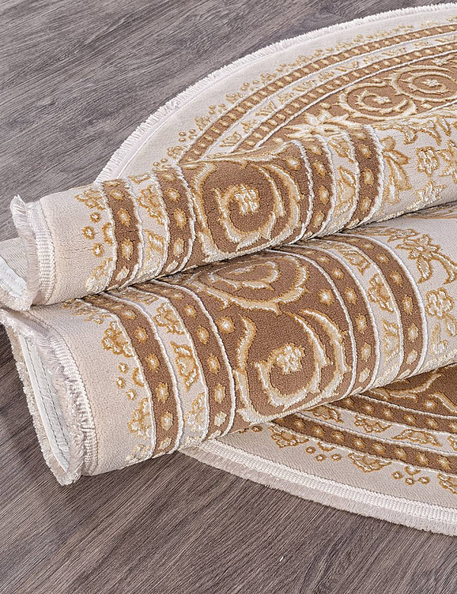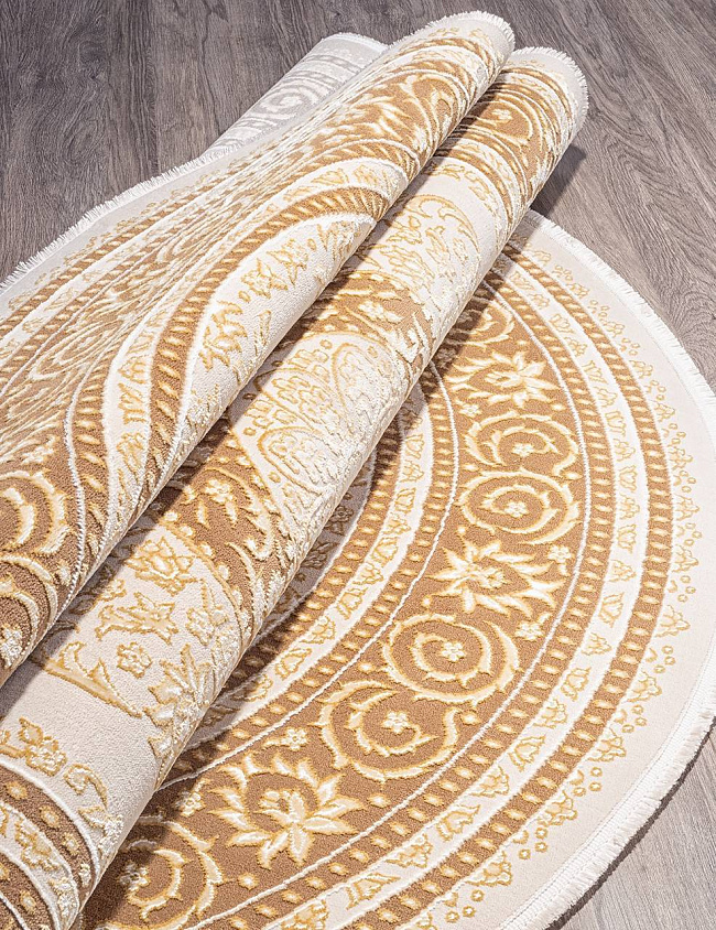 Коротко: «Ковер QATAR 33030 080 BROWN Овал» (QATAR, MERINOS, Турция) — ковер для дома, гостиной. материал: полипропилен, стиль: в классическом стиле, цвет: бежевый, кремовый, ворс: 9 мм, плотность: 672000 точек/м², основа: джут, ориентирован на классическую подачу, страна производства: Турция.