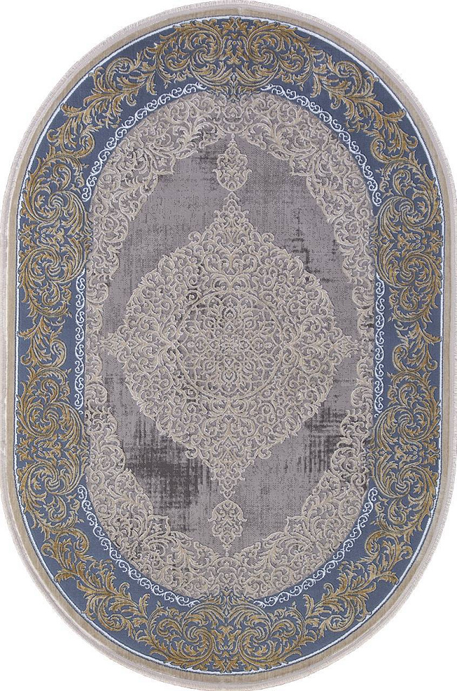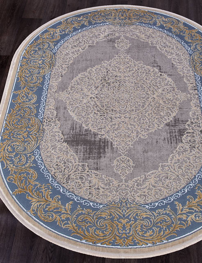 Коротко: «Ковер QATAR 33031 030 BLUE Овал» (QATAR, MERINOS, Турция) — ковер для дома, гостиной. материал: полиэстер, стиль: в классическом стиле, цвет: серый, синий, коричневый, ворс: 9 мм, плотность: 672000 точек/м², основа: джут, ориентирован на классическую подачу, страна производства: Турция.